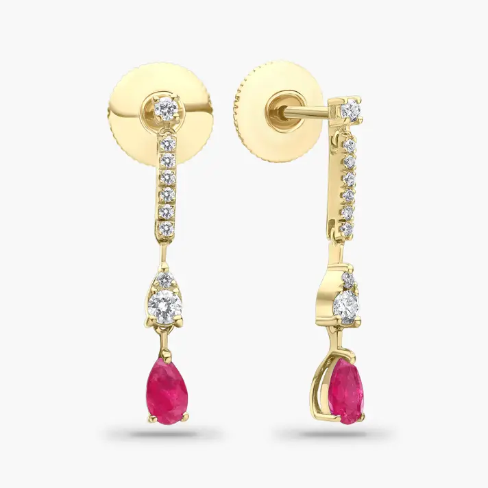עגילים משובצי רובי ויהלומים מסדרת ה- COLOR DROP