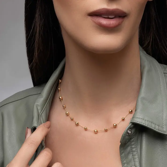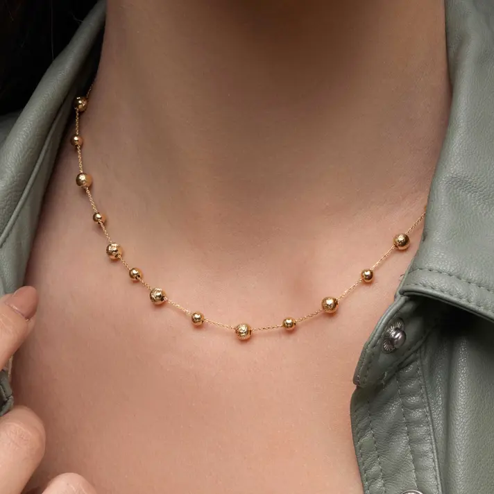 שרשרת טוקיו מזהב ובשילוב כדורי זהב
