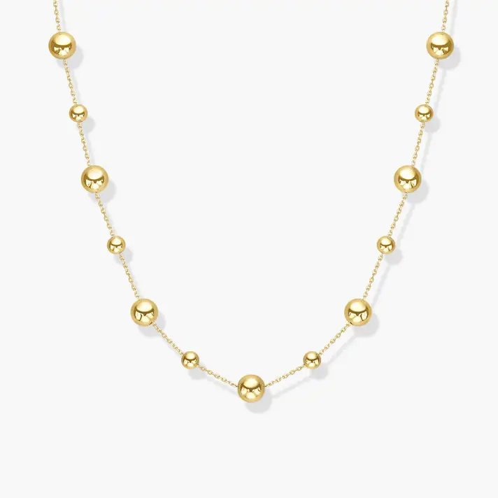 שרשרת מילאנו מזהב 14K משובצת 8 חרוזי זהב צהוב בגדלים שונים. מידת כדורי הזהב 3,6 מ"מ. מידות השרשרת 42 ס"מ עם אפשרות להארכה ב- 3 ס"מ נוספים.