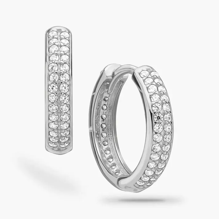 עגילי חישוק מור- עשויים זהב 14K לבן ומשובצים בזרקונים נוצצים. מידות העגילים 1.5 ס"מ,רוחב 0.3 ס"מ