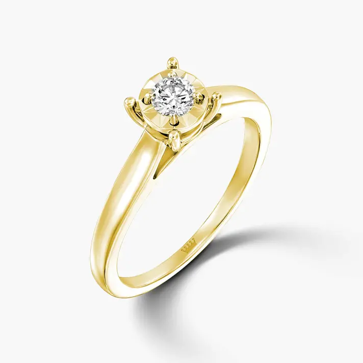 טבעת זהב 14K המשובצת ביהלום טבעי ונוצץ במשקל 0.23 קראט.רוחב הטבעת 2 מ"מ, גובה האבן המרכזית 7 מ"מ