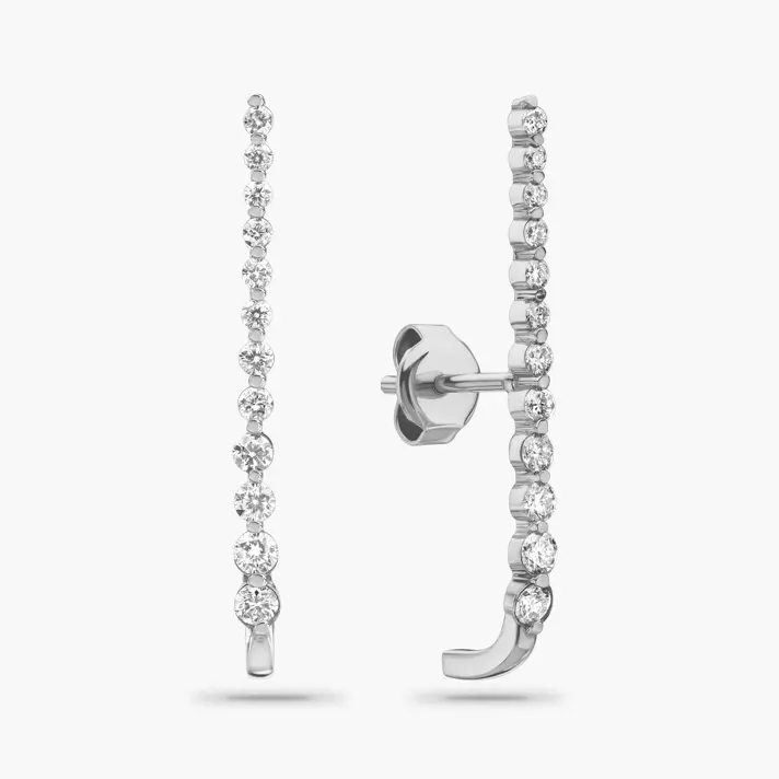 עגילי אוליביה משובצים 24 יהלומים טבעיים ונוצצים באורך 3 ס"מ.