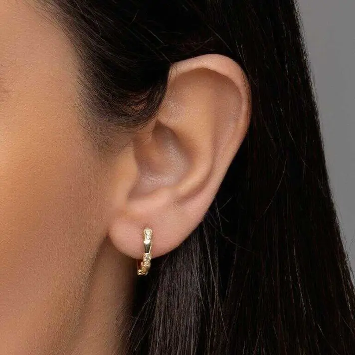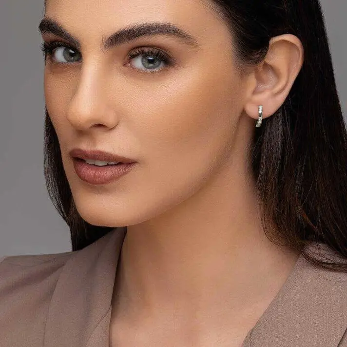 עגילי אריאה הם עגילי חישוק בזהב 14K משובצי יהלומים טבעיים ונוצצים. קוטר העגילים 1.5 ס"מ.
