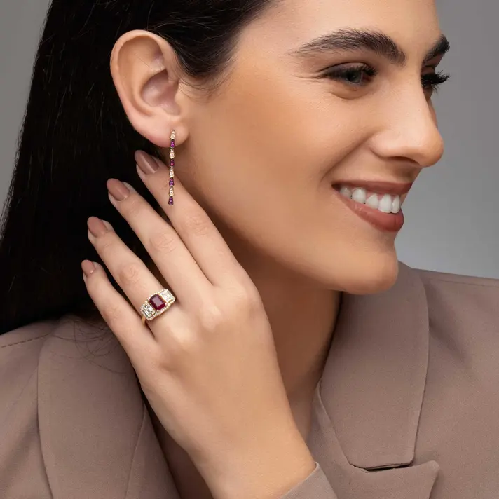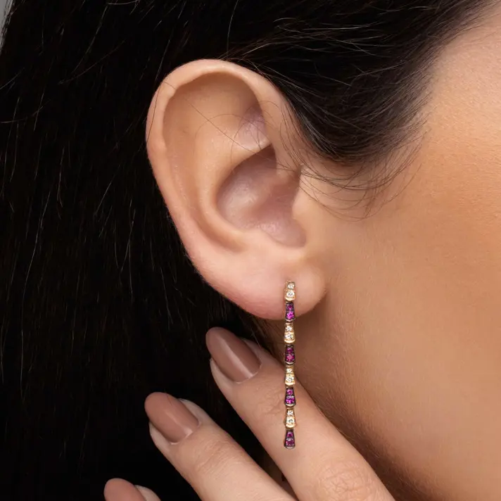 עגילי PARTY בשיבוץ רובי ויהלומים
