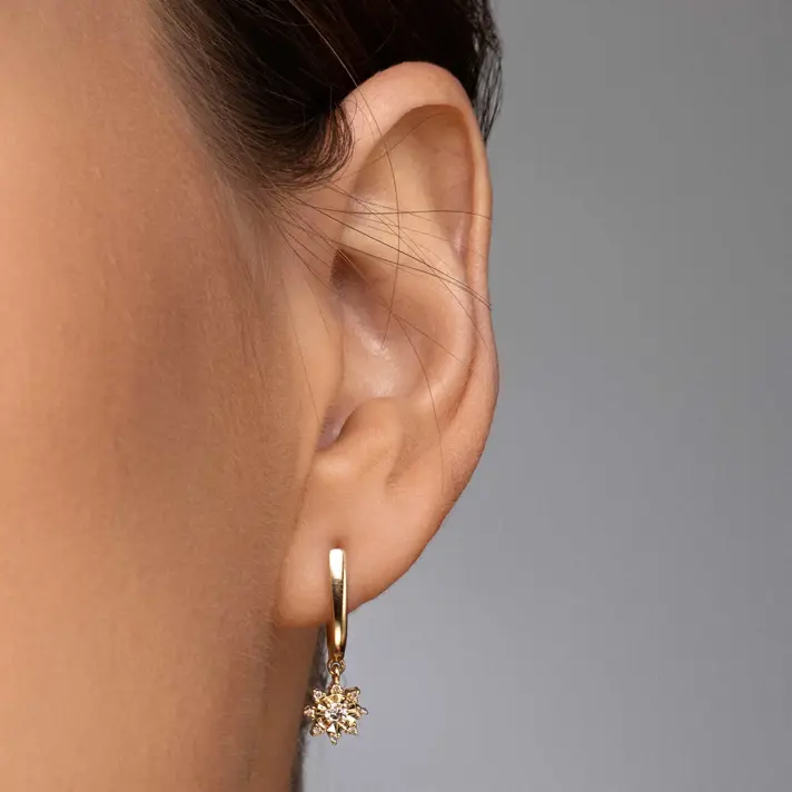 עגילי זהב שמש יהלומים