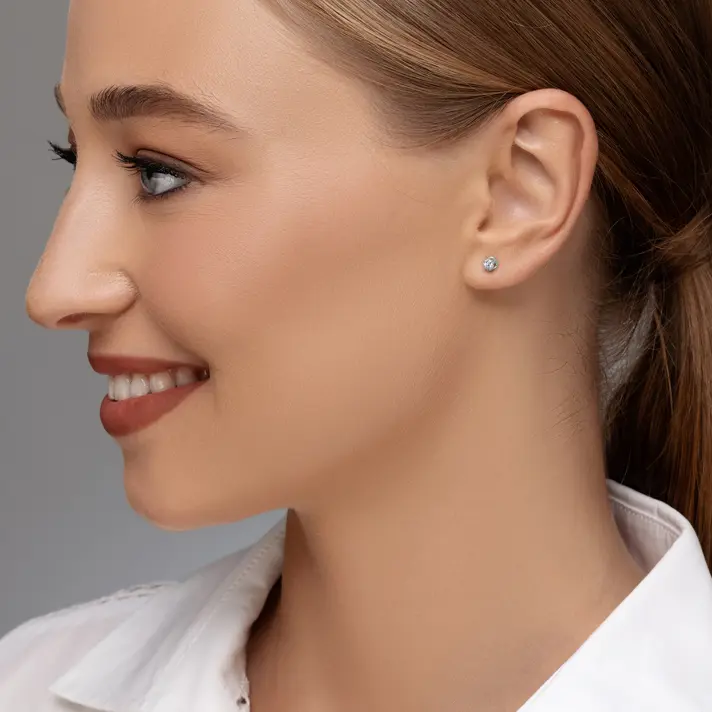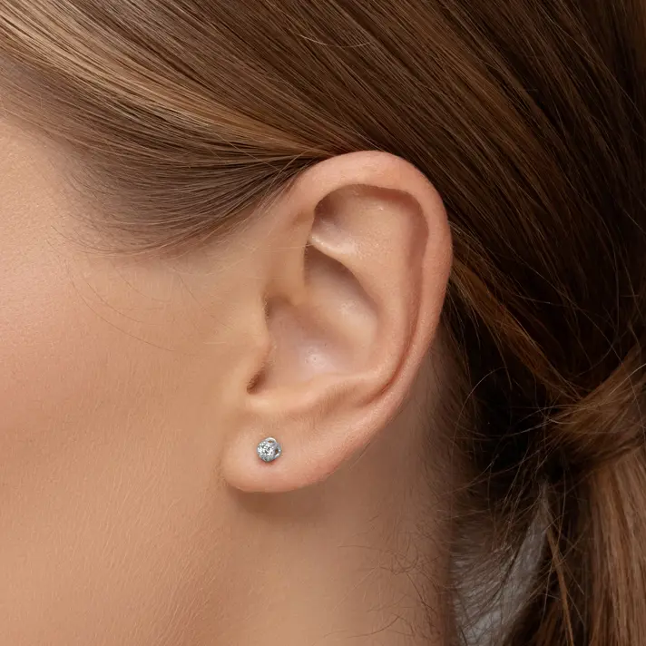 עגילי זהב 14K סוליטר צמודים לאוזן המשובצים ב 2 יהלומים טבעיים ונוצצים. קוטר העגיל 0.4 ס"מ.