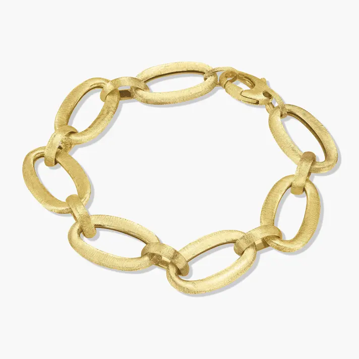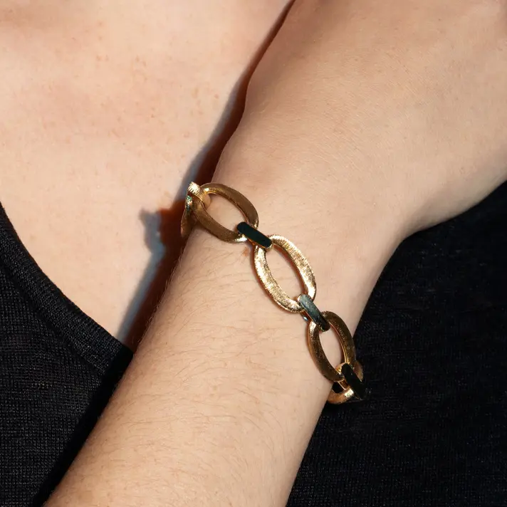 צמיד זהב 14K בנוי מ-7 חוליות אובליות בצבע צהוב מט מרשימות ויפות. אורך הצמיד 19.5 ס"מ.