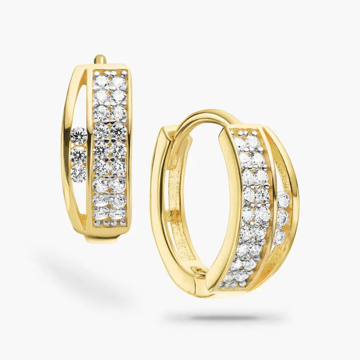 עגילי חישוק מזהב בשיבוץ זירקונים