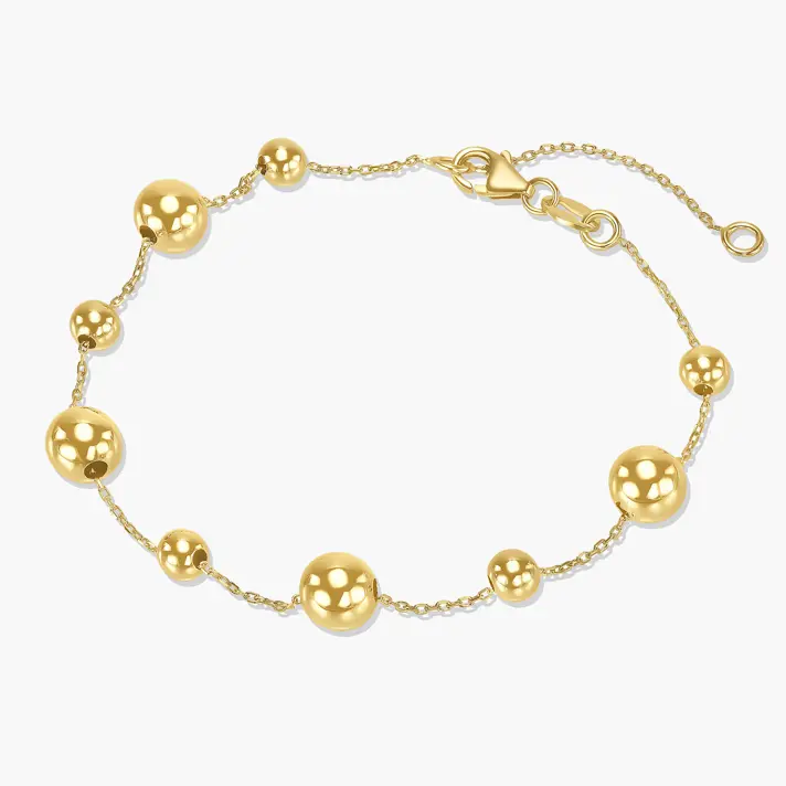 צמיד זהב 14K בשילוב חרוזי זהב בגימור מבריק בקוטר משתנה. מידות הכדורים 2.5,5 מ"מ, מידות הצמיד 16.2 ס"מ + 2 הארכה נוספים.