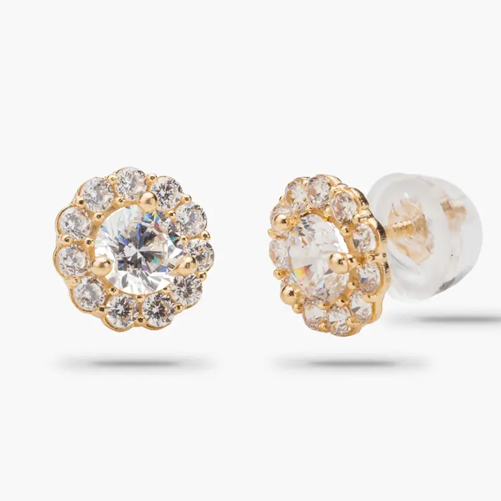 עגילי זהב 14K צמודי אוזן, בשיבוץ זרקונים נוצצים.
