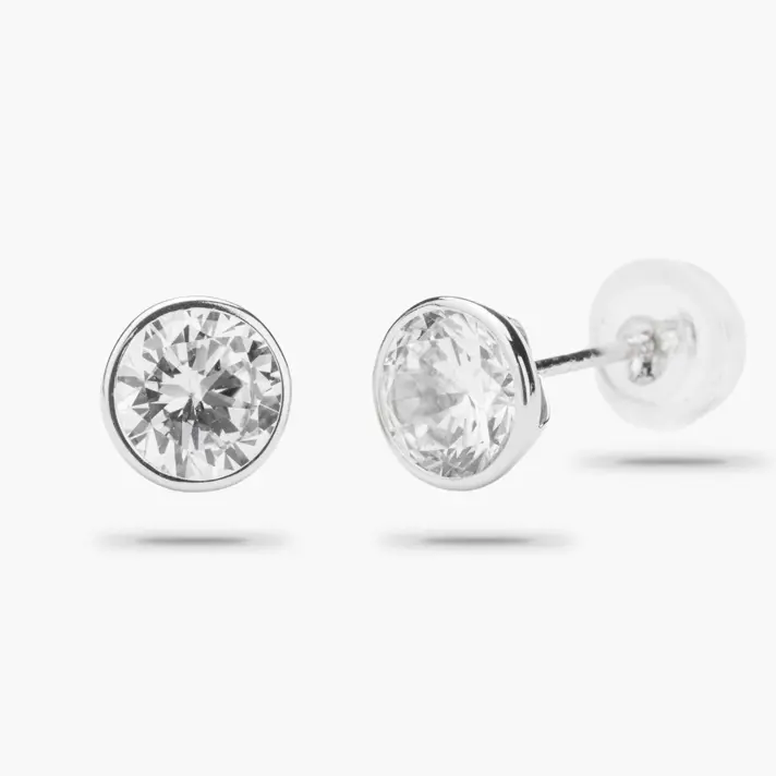 עגילי זהב 14K צמודי אוזן, בשיבוץ זרקון עגול.