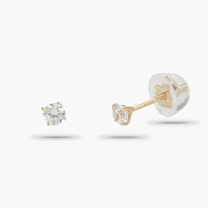 עגילי זהב 14K צמודים ועדינים המשובצים בזרקונים נוצצים.