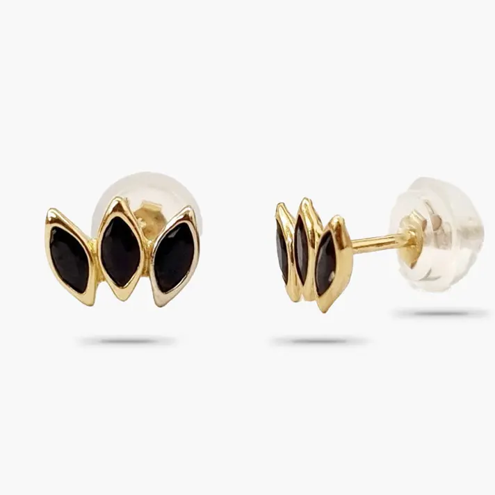 עגילי זהב 14K צמודי אוזן בצורת מניפה משובצים בזרקונים שחורים