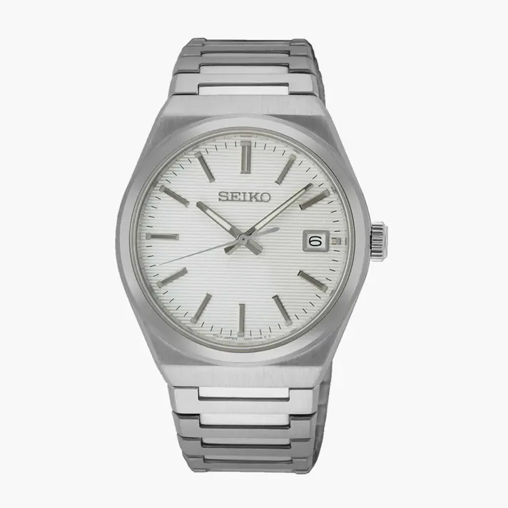 שעון סייקו גברים מקולקציית הקלאסיק. לשעון מנגנון 6N52 קוורץ. לוח השעון בגוון לבן ובטקסטורת פסים. לשעון זכוכית ספיר קריסטל למניעת שריטות, לומיברייט חומר זרחני שאינו רדיואקטיבי על האינדקסים והמחוגים לקריאה אופטימלית גם בתנאי חשכה וצמיד מתכת איכותי בגוון כסוף. קוטר השעון 38.9 מ"מ והוא עמיד למים עד 100 מטר.