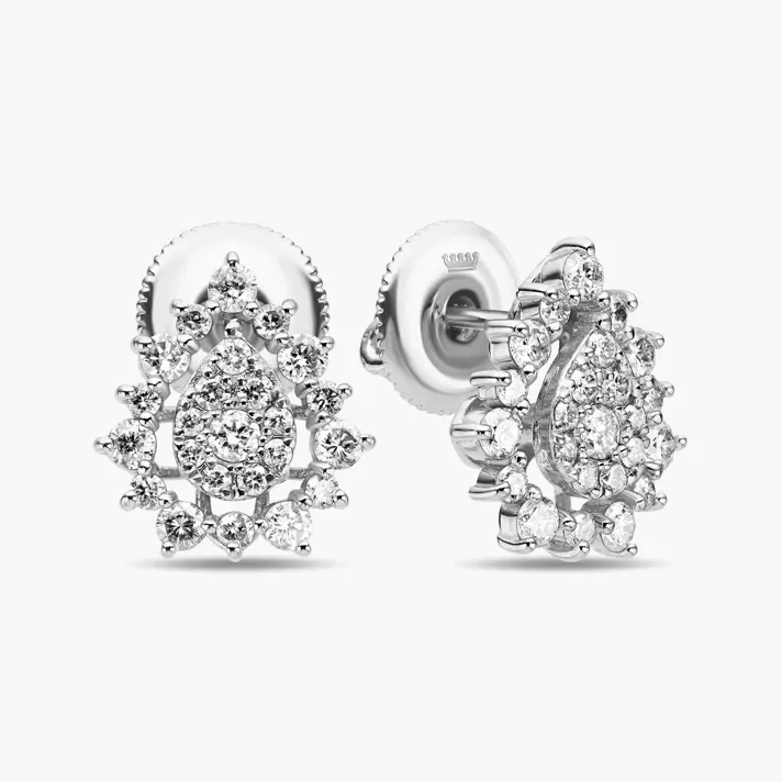 עגילי זהב 14K צמודי אוזן בצורת טיפה ובשיבוץ 48 יהלומים טבעיים ונוצצים.
