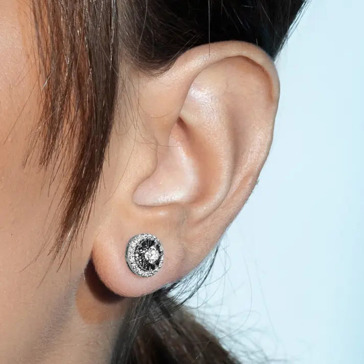 עגילי זהב 14K צמודי אוזן משובצים יהלום סוליטר אמיתי ונוצץ עם סיומת חיתוך לייזר לנצנוץ מקסימלי.