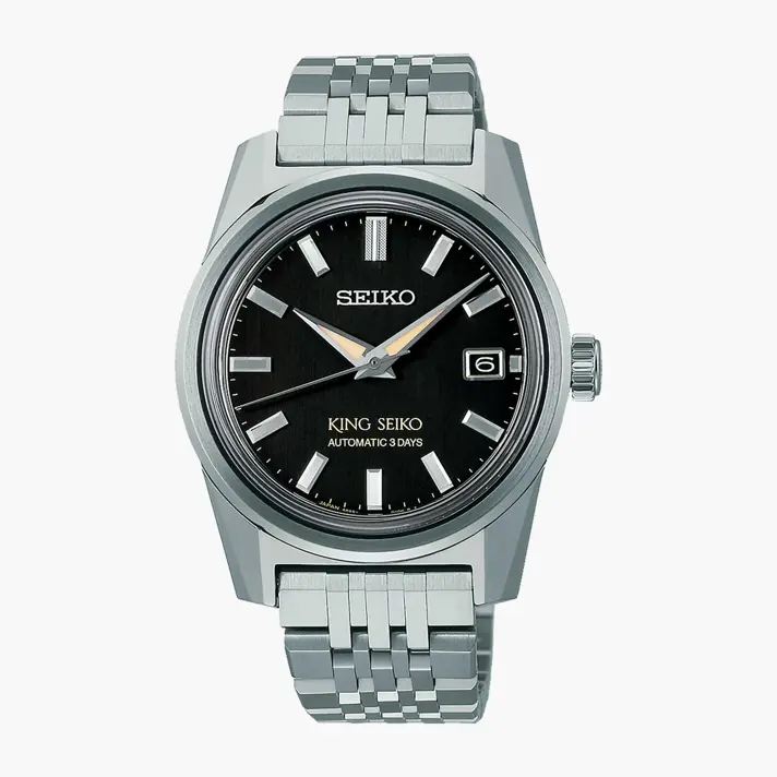 שעון KING SEIKO הזמין לרכישה רק בחנויות בוטיק. שעון זה שואב השראה מהמורשת של עברה של טוקיו - מראה הרטרו ותרבות הפופ בתקופת הזוהר של שנות ה-60, כאשר ה King seiko הראשון שוחרר. שעוני King Seiko תרמו לפיתוחה של Seiko בדייקנות טכנית המובילה בעולם לאחר ההשקה הראשונה שלהם בשנת 1961. כדי להעניק את מראה הוינטג' שלו, לוח השעון מתאפיין בגימור אנכי ומרקם מתכתי עם צביעה  באפקט הילה- רטרו יוקרתי המתאזן על ידי עיצוב השעון הקלאסי והחד של KSK המזוהה. לוח השעון בגוון שחור פחם ומכאן כינויו  Charcoal Suit חליפת פחם. לשעון מנגנון 6R55 אוטומטי הנטען מתנועת היד, בעל עתודת כח של שלושה ימים כשהוא טעון במלואו, ספרות ומחוגי השעון מחופים בלומיברייט חומר זרחני שאינו רדיואקטיבי לקריאה אופטימלית גם בתנאי חשכה. המאפיין המיוחד של דגם זה הוא הצמיד שניתן להחלפה בקלות למראה מותאם אישית - ניתן להסיר את הצמיד בקלות על ידי לחיצה בצידי החלק האחורי של קצה הצמיד. לשעון זכוכית ספיר קריסטל למניעת שריטות וציפוי אנטי רפלקטיבי. קוטר השעון 38.3 ס"מ והוא עמיד במים עד 100 מ' עומק.