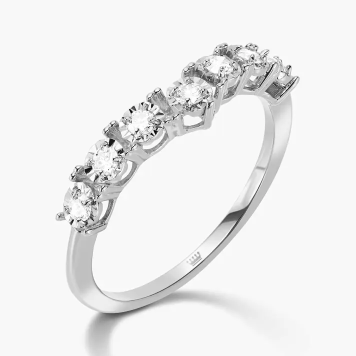 טבעת קשת -עשויה זהב 14K משובצת 7 יהלומים טבעיים ונוצצים במראה של שתי קשתות המתחברות במרכז.