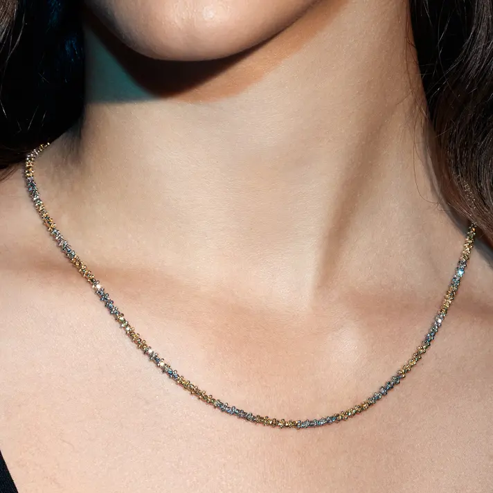 שרשרת וינה מזהב 14K ביקולור צהוב ולבן בשילוב כדורי זהב עגולים בגודל משתנה. השרשרת הנה חלק מקולקציית ה- GOLDEN GLOW החדשה השומרת על קווים קלאסיים ובעיצוב עכשווי. אורך השרשרת 45 ס"מ עם אופציה להאריך ב 3 ס"מ נוספים.