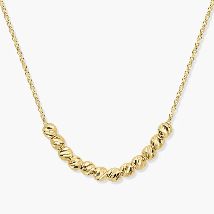 שרשרת זהב 14K בשילוב 12 כדורי זהב בקוטר 3 מ"מ, בחיתוך לייזר לנצנוץ מקסימלי. אורך השרשרת 42 ס"מ + 2.5 ס"מ הארכה נוספים.