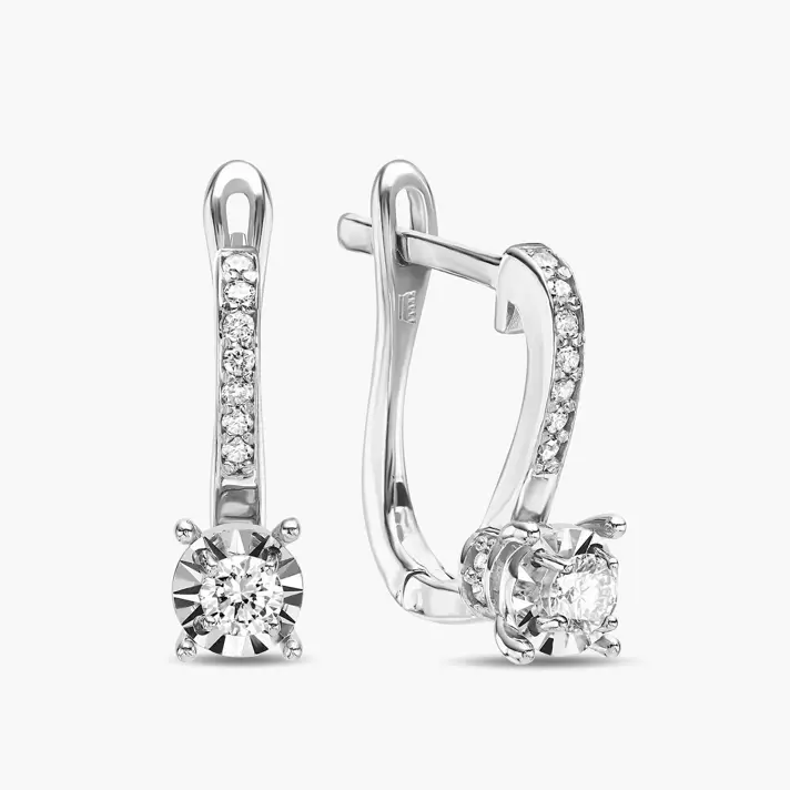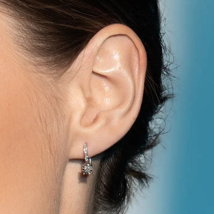 עגילי זהב 14K בצורת בננה המשובצים 16 יהלומים טבעיים ונוצצים.