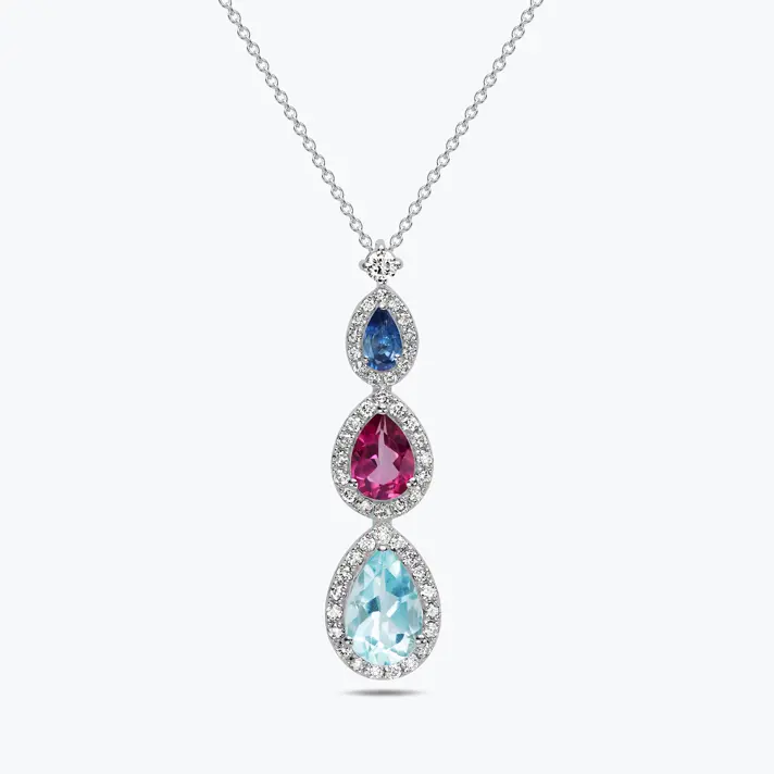 תליון זהב 14K מקולקציית ה DROPS OF JOY המשלבת יהלומים טבעיים ונוצצים וטיפות של אבני חן צבעוניות. הנצנוץ של יהלומים משקף את הקסם שבכל רגע ואבני החן מוסיפות מראה עדכני ומלא שיק עם שילובי צבעים היוצרים חוויה ויזואלית נעימה, הרמונית ומעוררת שמחה. בתליון משובצות אבני חן בשילובי צבעים שונים ובחיתוך טיפה יוקרתי, מוקפות 49 יהלומים נוצצים.