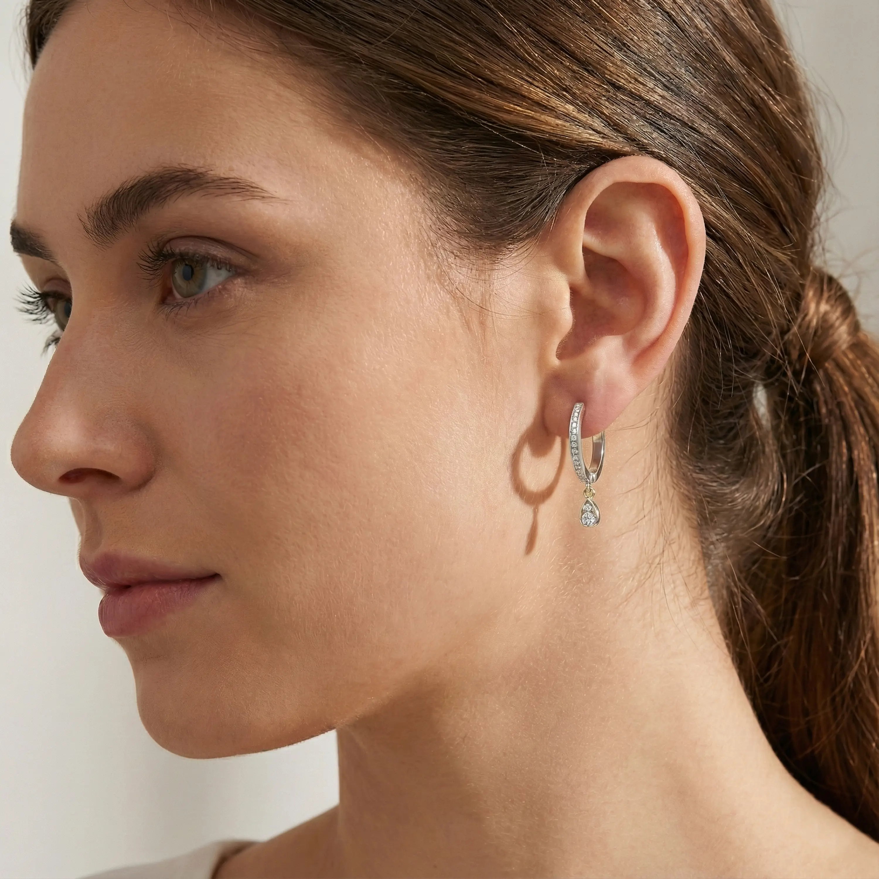 עגילי זהב 14K חישוקי טיפה מסדרת Black Series בשילוב אמייל. העגילים משובצים 34 יהלומים טבעיים ונוצצים. קוטר החישוק 1.7 ס"מ, אורך הטיפה 0.5 ס"מ.