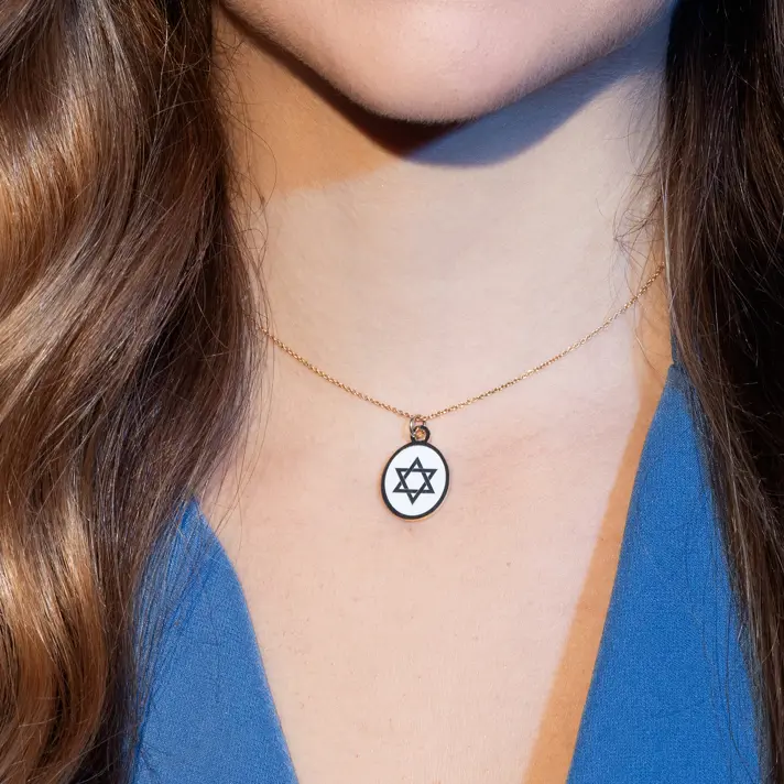 תליון ישמרך עם מגן דוד בציפוי אמייל לבן