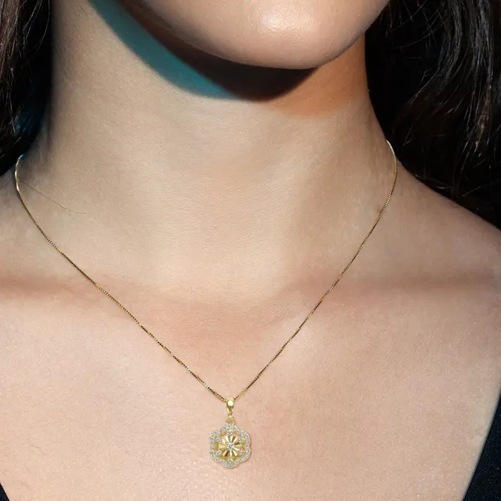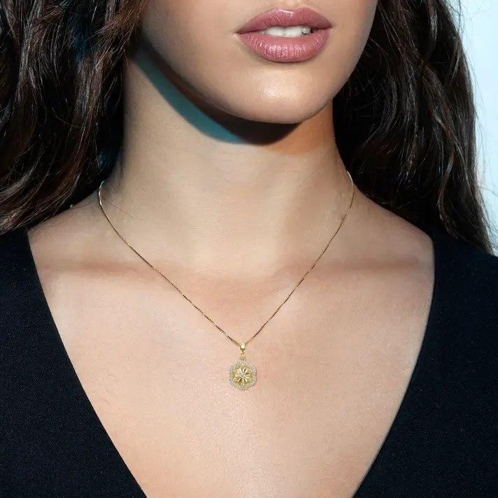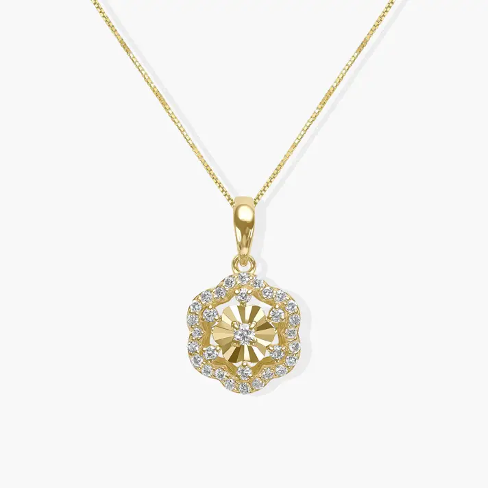 תליון זהב 14K בצורת פרח ובשיבוץ 31 יהלומים טבעיים ונוצצים.
