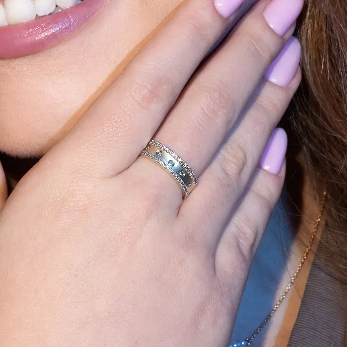 טבעת ג'יין מזהב 14K ברוחב 0.5 ס"מ ובשיבוץ 55 יהלומים טבעיים ונוצצים.