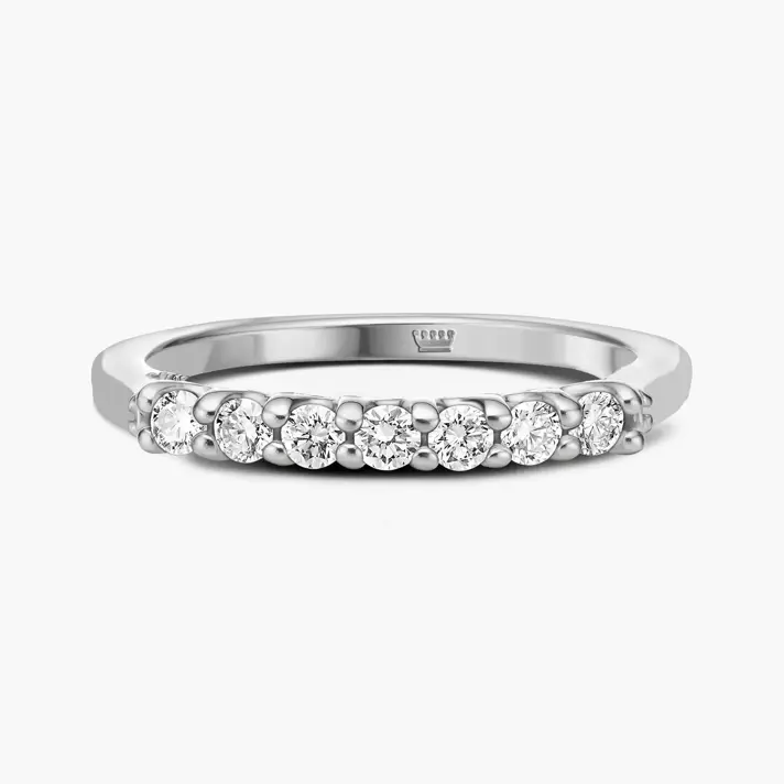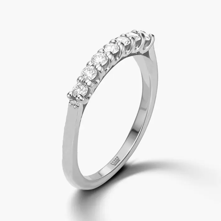 טבעת חצי נישואין מזהב 14K בשיבוץ 7 יהלומים טבעיים ונוצצים.