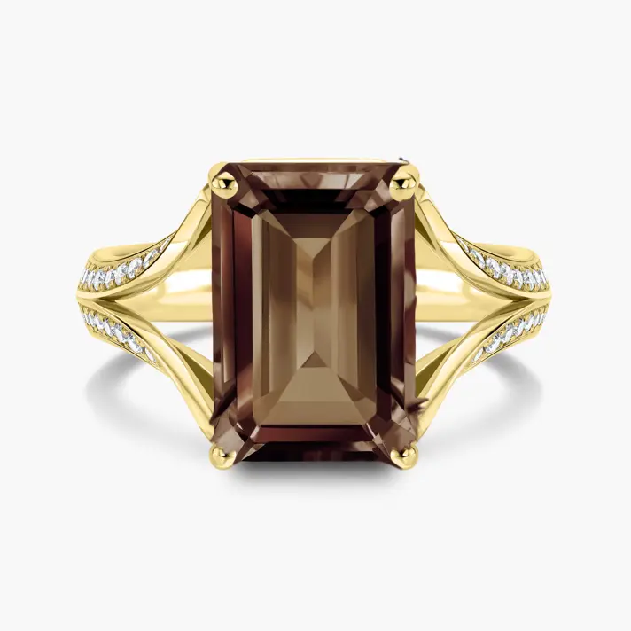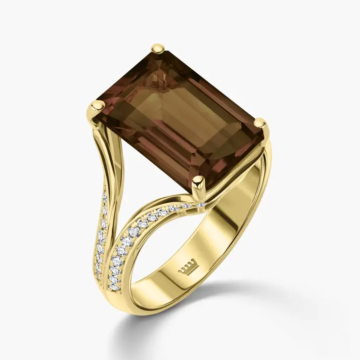 טבעת זהב 14K מקולקציית SPRING BLOOM האביבית, בשיבוץ סמוקי קוורץ ו62 יהלומים טבעיים ונוצצים.