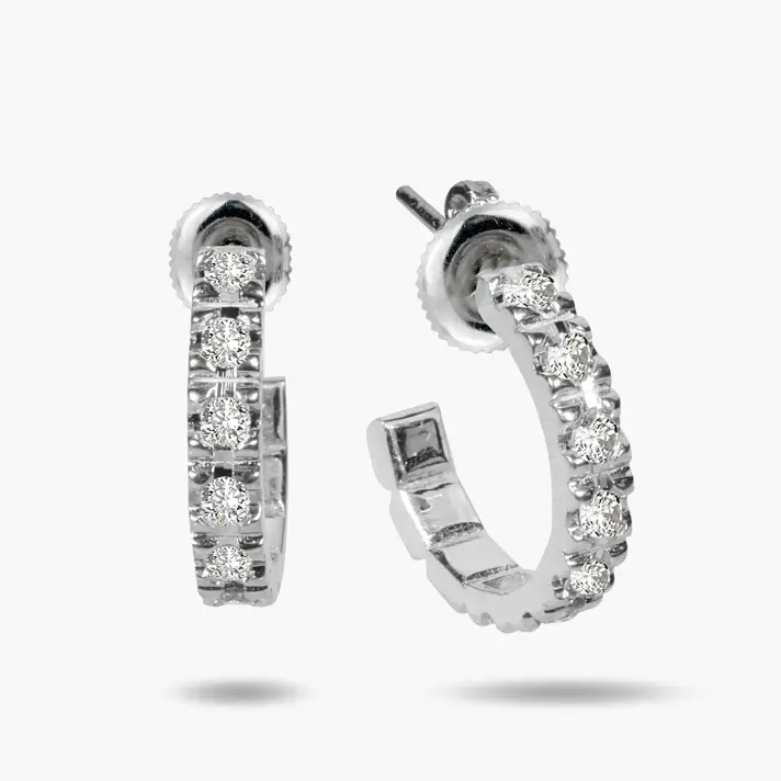 עגילי חישוק קמיל מזהב 14K בשיבוץ 14 יהלומים טבעים ונוצצים.