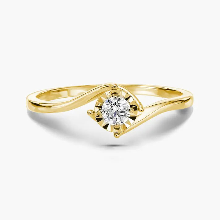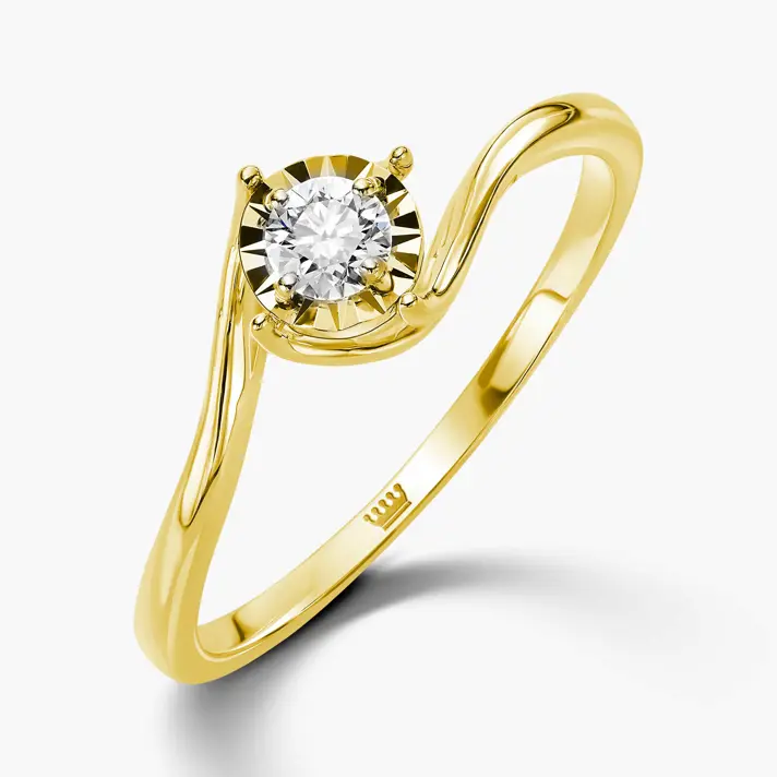 טבעת מזהב 14K עדינה ומיוחדת ובמרכזה מעגל זהב בגימור לייזר בשיבוץ יהלום טבעי ונוצץ.