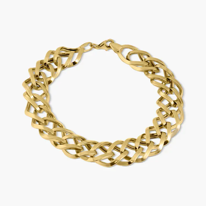 צמיד זהב 14K מחוליות בצורת גל המתחברות זו לזו עם מרווח המאפשר תנועה. אורך הצמיד 19 ס"מ.