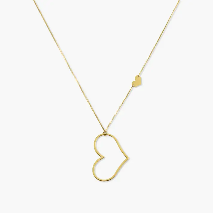 שרשרת TWO HEARTS מזהב 14K עם לב ותליון לב. אורך השרשרת 42 ס"מ+ 2.5 ס"מ הארכה נוספים.