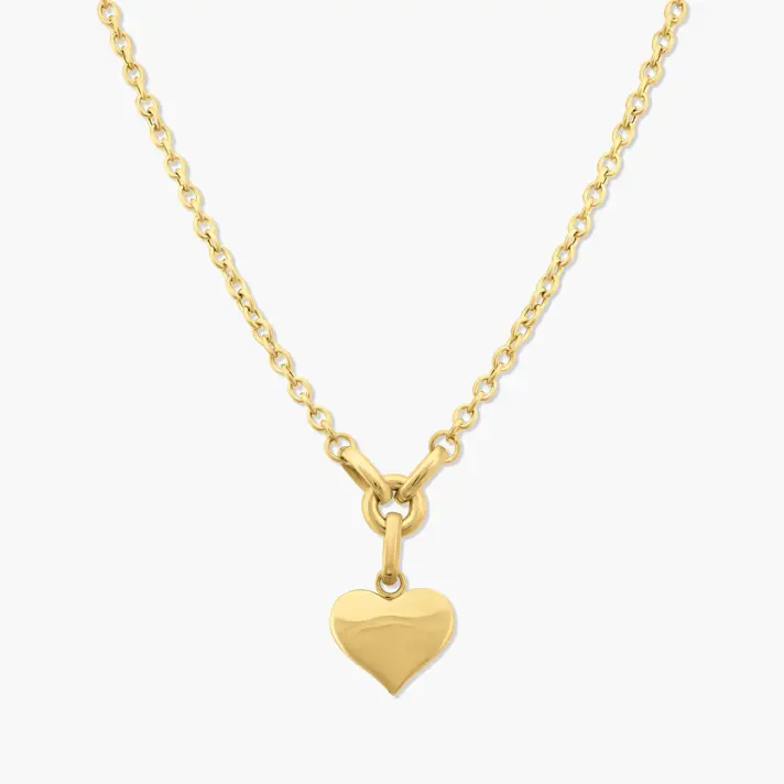 שרשרת זהב בסיומת חוליות ובשילוב תליון לב