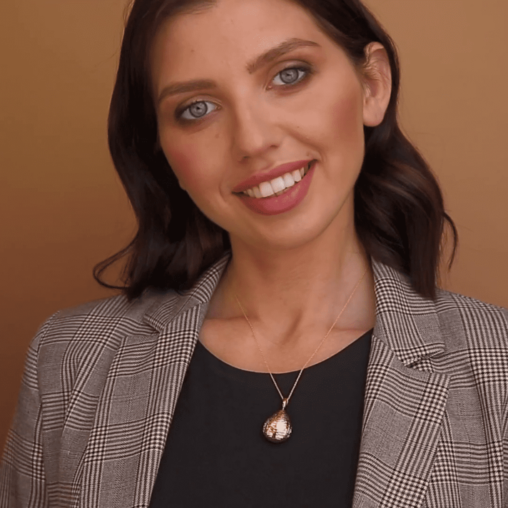 תליון זהב בצורת טיפה ובגימור כדור דיסקו מנצנץ. מידות התליון 3.2*1.9*1.3 ס"מ .