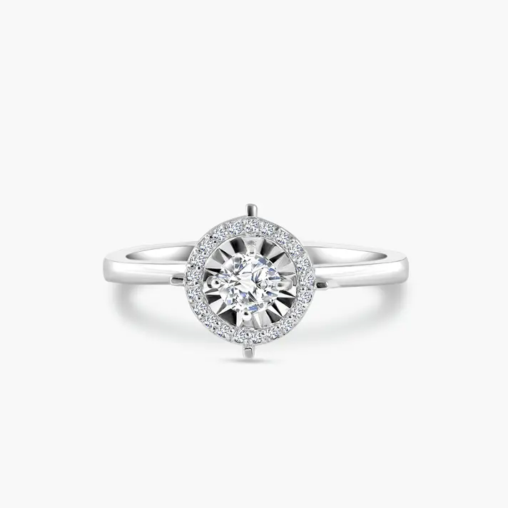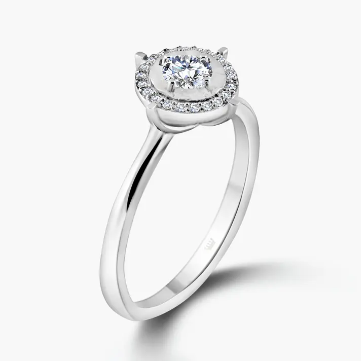 טבעת יהלומים משובצת יהלום מרכזי ו 21 יהלומים טבעיים ונוצצים סביבה. מושלמת להצעת נישואין!