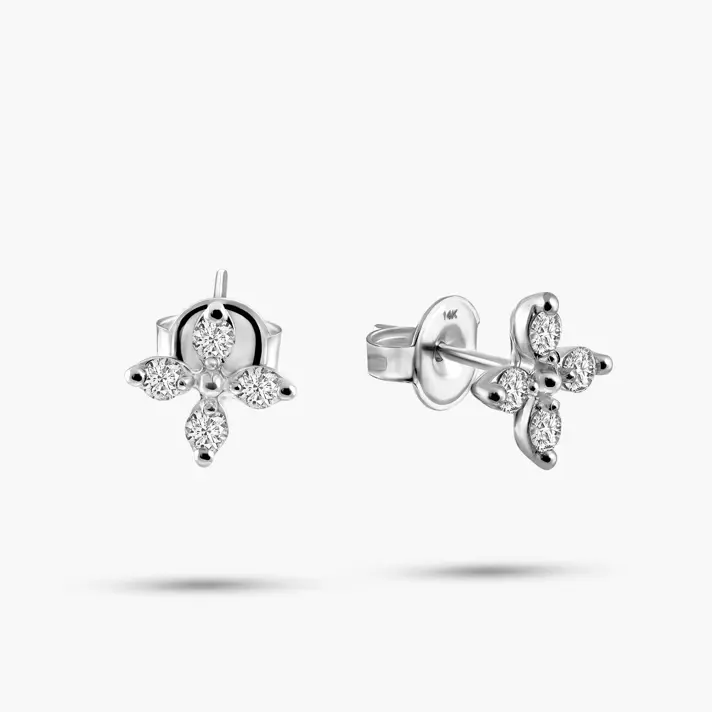 עגילי זהב 14K צמודי אוזן בצורת תלתן, משובצים יהלומים טבעיים ונוצצים.
