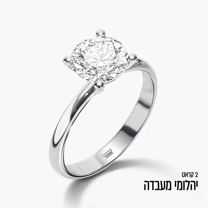 טבעת זהב 14K משובצת יהלום מעבדה סוליטר מרשים במשקל של יותר מ 2 קראט בחיתוך עגול מרשים וקלאסי. הטבעת מגיעה עם תעודה גמולגית המבטיחה את איכות היהלום.