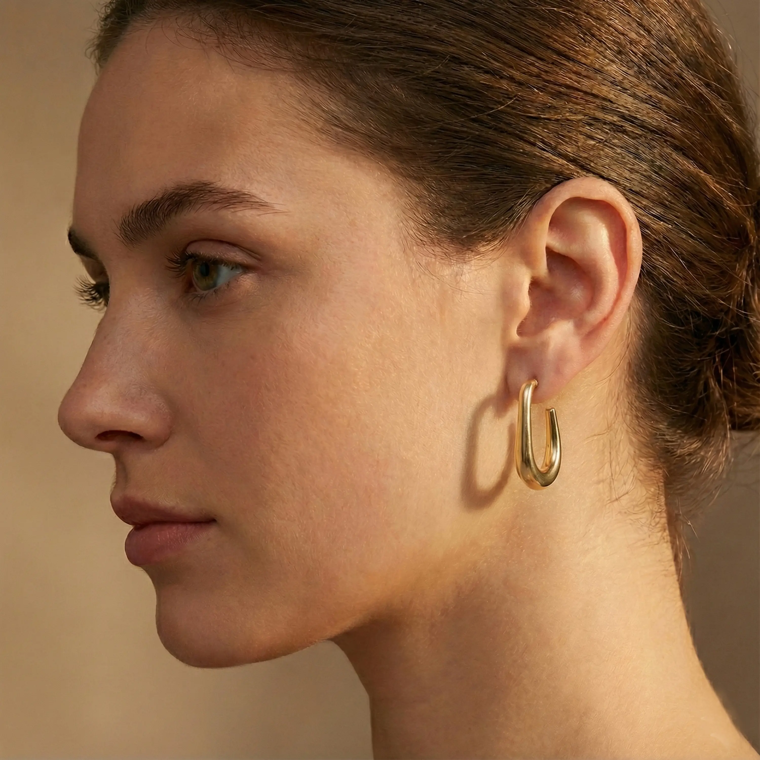 עגילי זהב 14K בעיצוב טיפה פתוחה עם גימור חלק ומבריק. הקווים הרכים והזורמים יוצרים מראה מודרני ונשי. מידות העגילים 3.5*0.7*2 ס"מ.