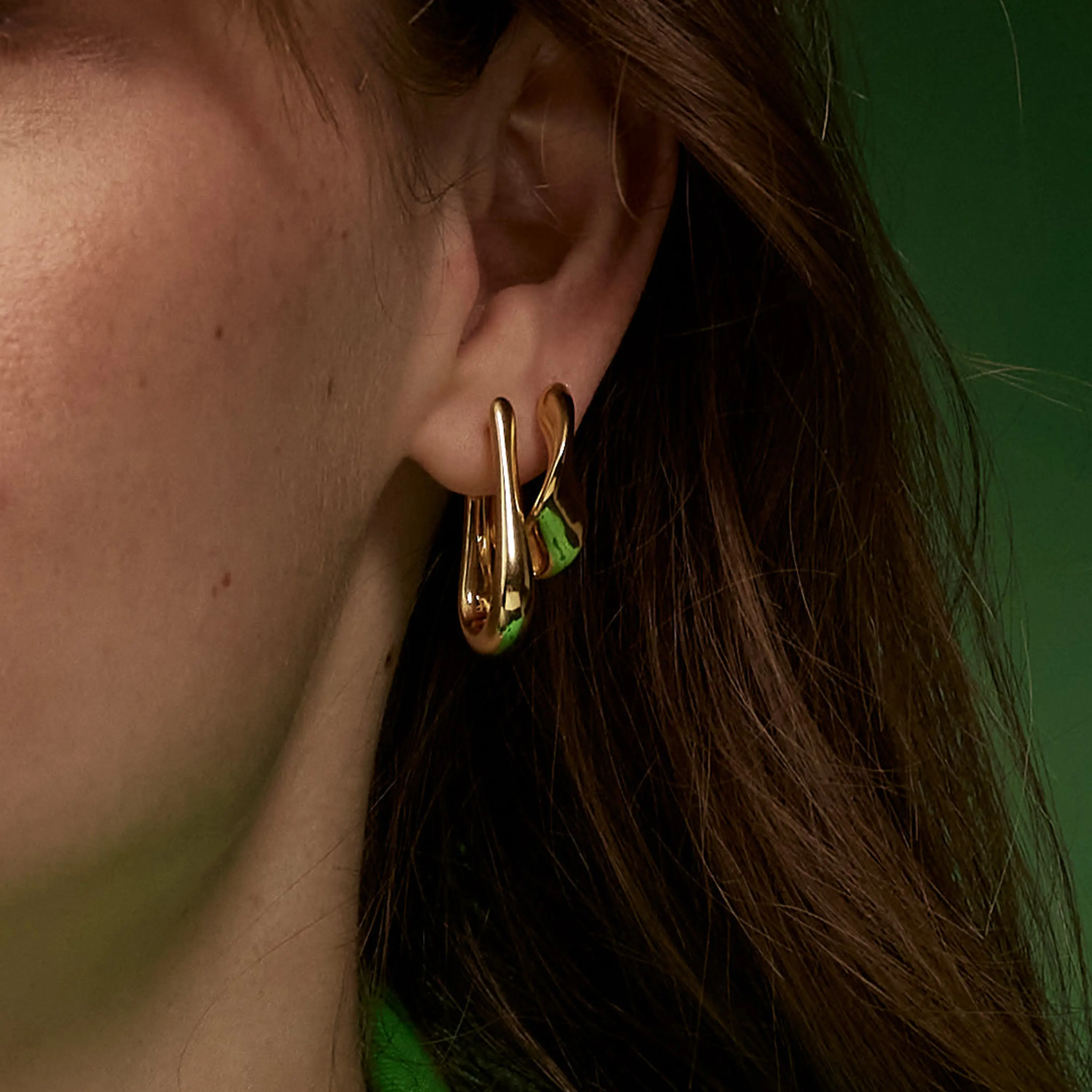 עגילי חישוק זהב 14K בעיצוב טיפה מודרני