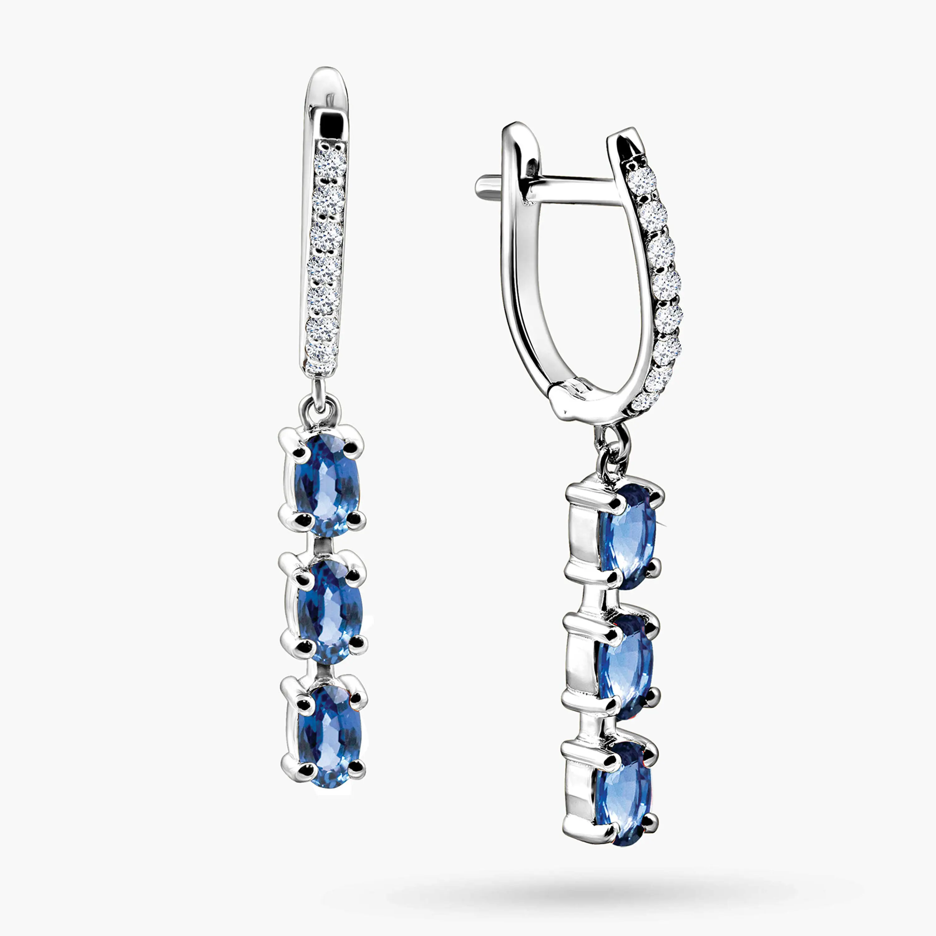עגילי ISLA מזהב 14K עם יהלומים וספיר