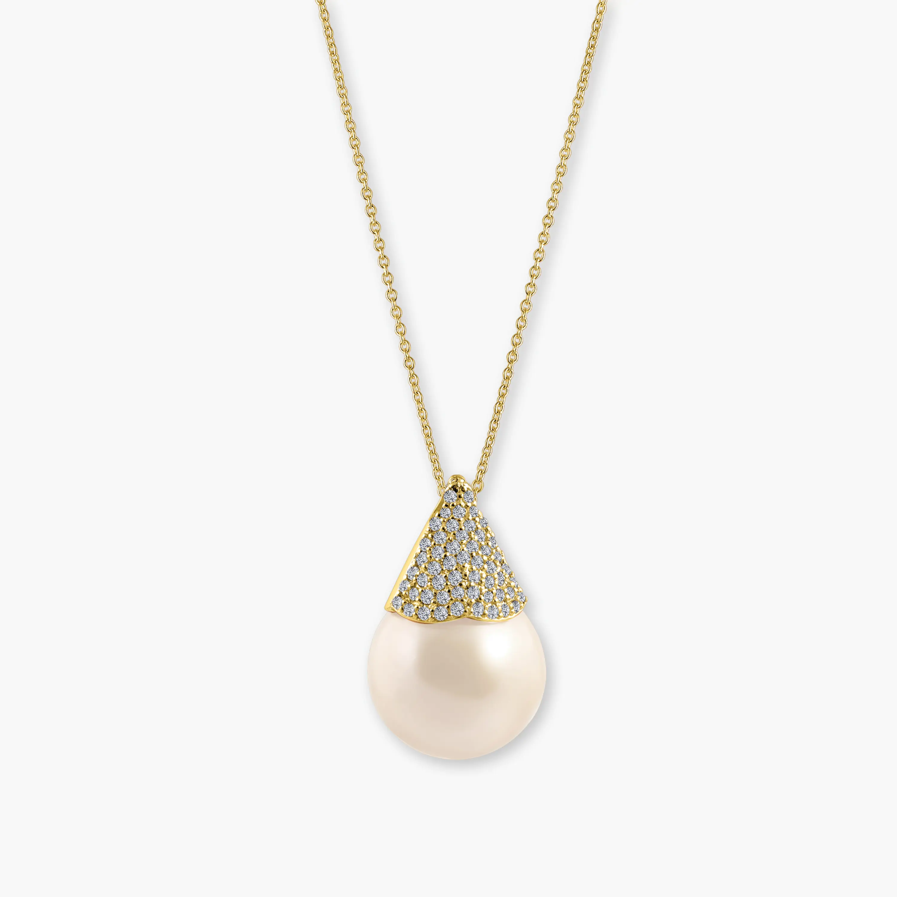 תליון יוקרה מלא סטייל ונוכחות, בעיצוב קונוס- מודרני שממגנט את העין. החלק העליון של התליון משובץ ב-69 יהלומים טבעיים ונוצצים, המייצרים אפקט מנצנץ ועשיר במיוחד, ומתחתיו משתלשלת פנינה עגולה בגוון שמנת עדין. הניגוד בין המרקם הזוהר של היהלומים לרכות הקלאסית של הפנינה יוצר מראה אלגנטי, נשי ובעל אמירה. תכשיט שלוקח את המושג זוהר לרמה הבאה.