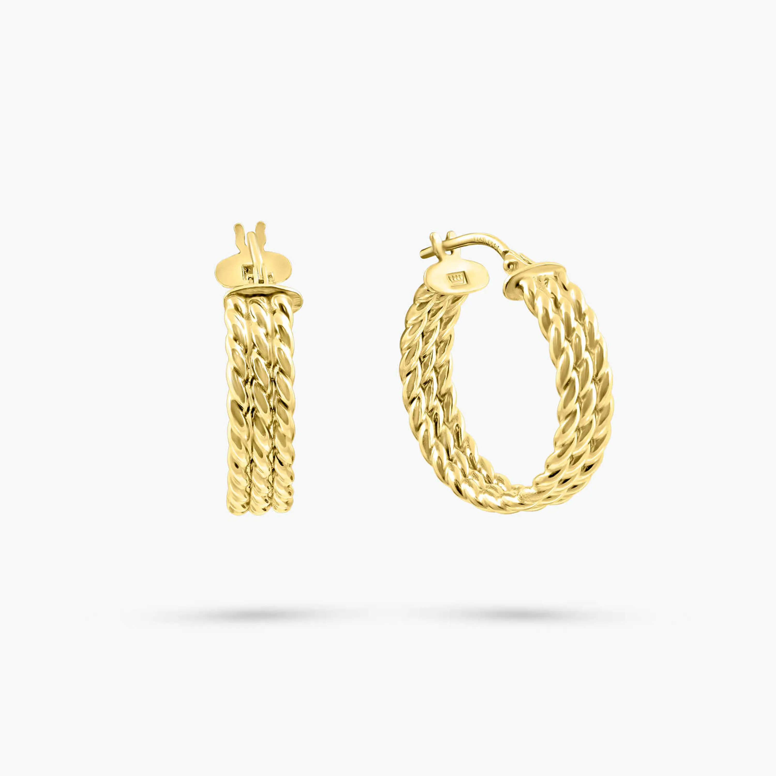 עגילי חישוק 3 שורות מזהב 14K במראה קלוע