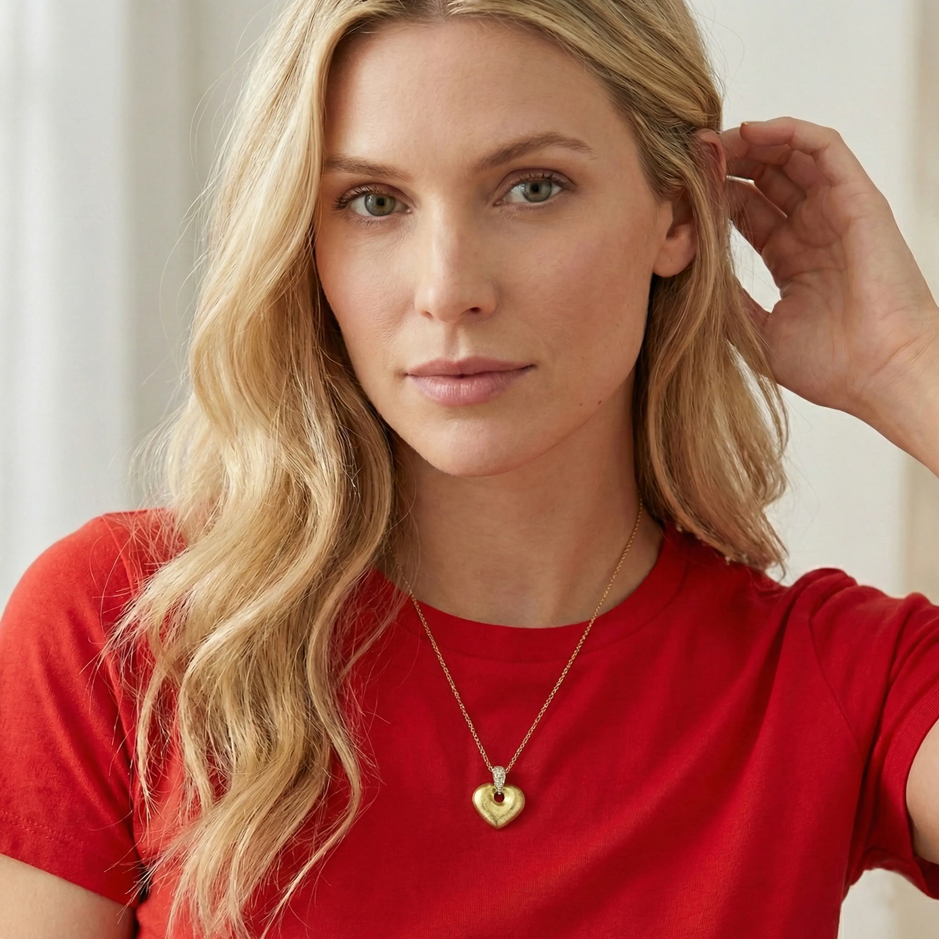 תליון לב עשוי זהב 14K בגימור סאטן רך ואלגנטי, בעיצוב מלא עומק ונוכחות. הלב משולב לולאה מעוגלת המשובצת זרקונים עדינים שמוסיפים ברק מאוזן ומודרני. שילוב מושלם בין טקסטורה מטית לנצנוץ עדין, המתאים לענידה יומיומית וגם למראה ערב מוקפד. מידות התליון 1.5 על 1.5 ס"מ.