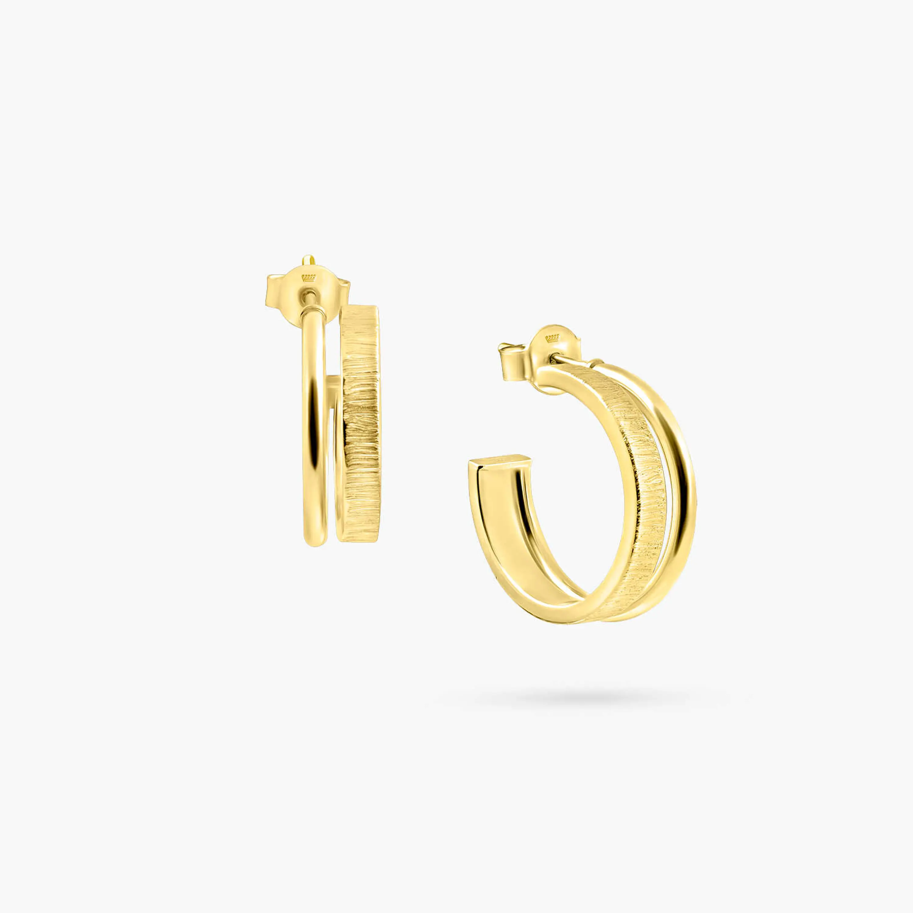 עגילי זהב 14K בעיצוב חישוק כפול, שילוב של קווים חלקים ומראה מודרני ומעודן. קוטר העגילים 1.7 ס"מ, מתאימים לשימוש יומיומי ולמראה אלגנטי וקליל כאחד.
