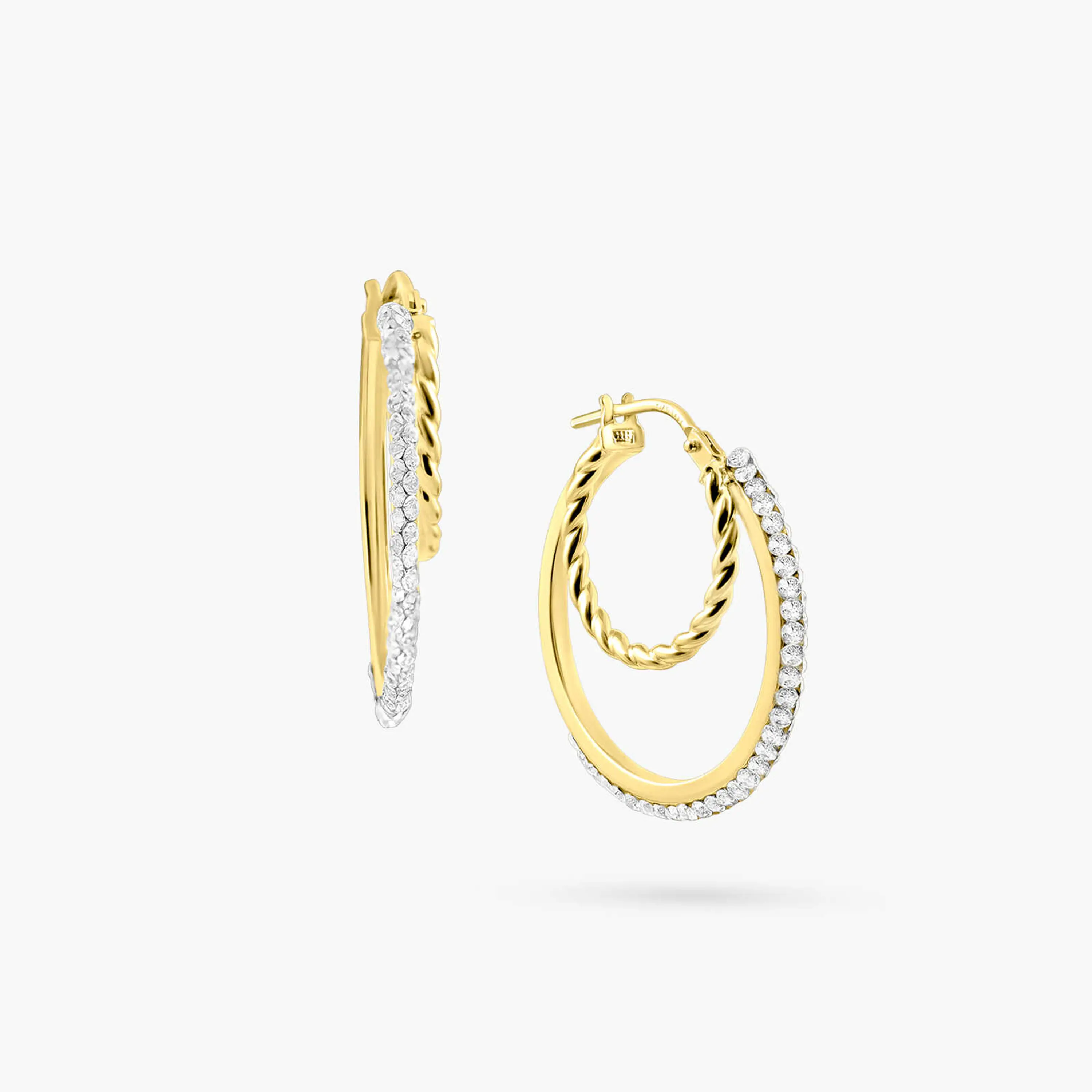 עגילי זהב 14K בעיצוב חישוק כפול משובץ זרקונים