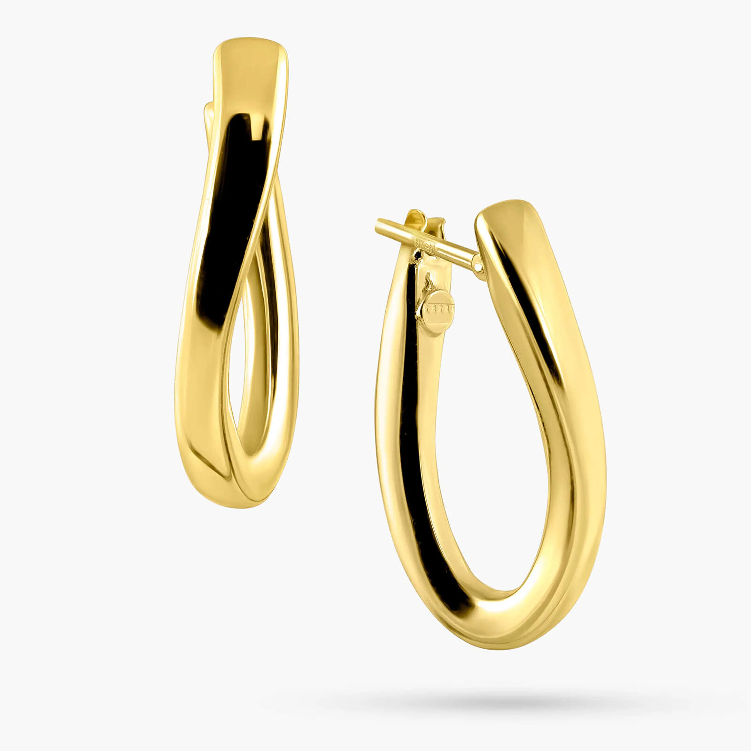 עגילים עשויים זהב 14K בעיצוב בננה אלגנטי עם קווים רכים וגימור מבריק. אורך העגילים 2.6 ס"מ. עיצוב נקי ועל זמני שמוסיף נוכחות עדינה ומתאים לשימוש יומיומי וגם לערב.